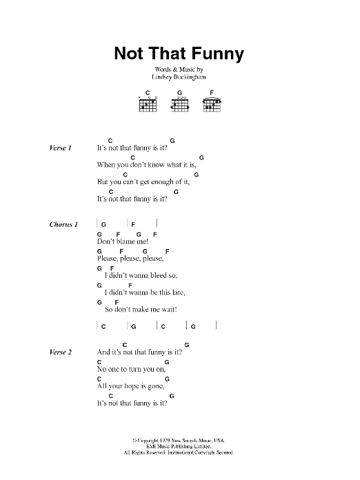 Download or print Fleetwood Mac Not That Funny sheet music, chords and digital score arranged for Guitar Chords/Lyrics. This Rock score includes 2 page(s).