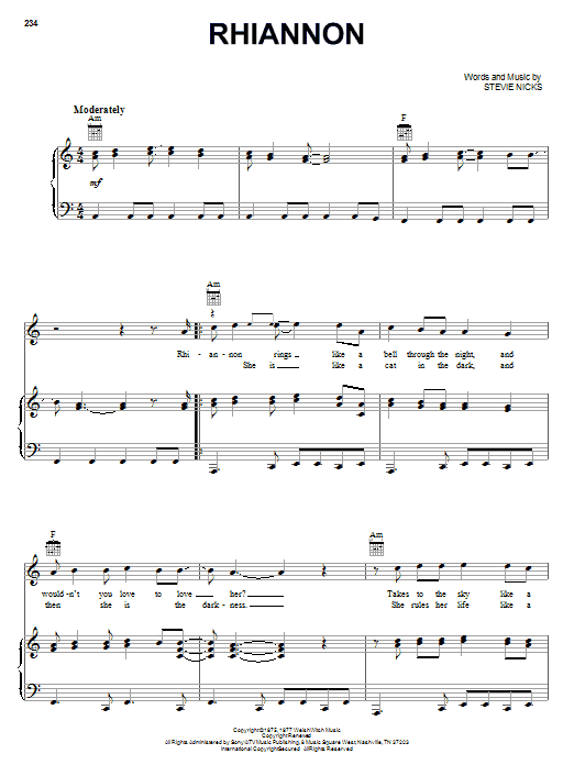 Download or print Fleetwood Mac Rhiannon sheet music, chords and digital score arranged for Guitar Tab. This Pop score includes 6 page(s).