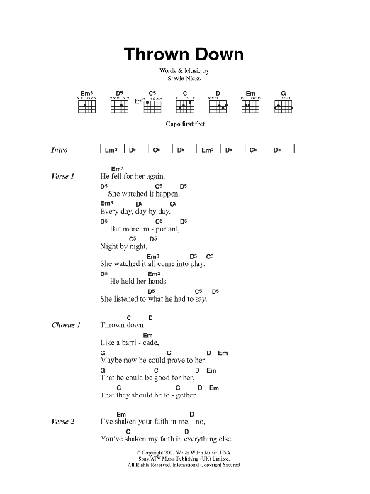Download or print Fleetwood Mac Thrown Down sheet music, chords and digital score arranged for Guitar Chords/Lyrics. This Rock score includes 2 page(s).