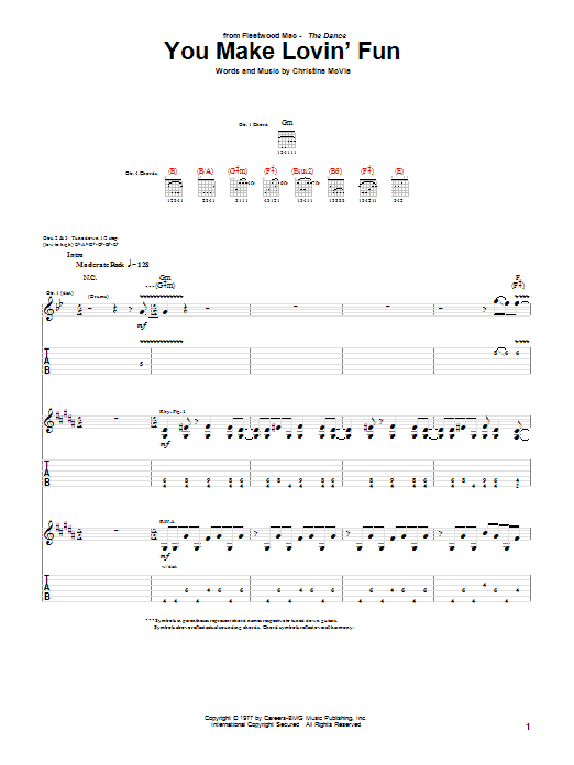 Download or print Fleetwood Mac You Make Lovin' Fun sheet music, chords and digital score arranged for Guitar Tab (Single Guitar). This Pop score includes 8 page(s).