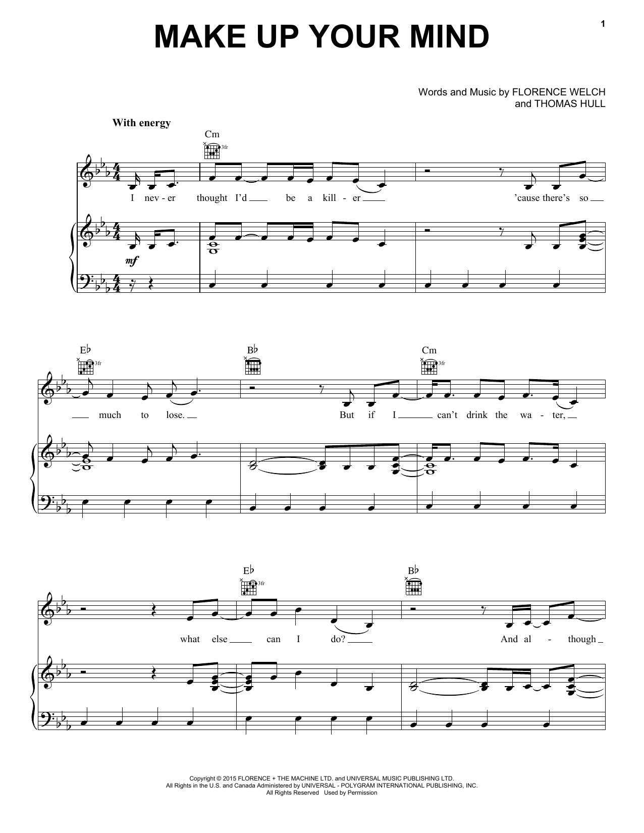Download or print Florence And The Machine Make Up Your Mind sheet music, chords and digital score arranged for Piano, Vocal & Guitar Chords (Right-Hand Melody). This Alternative score includes 10 page(s).