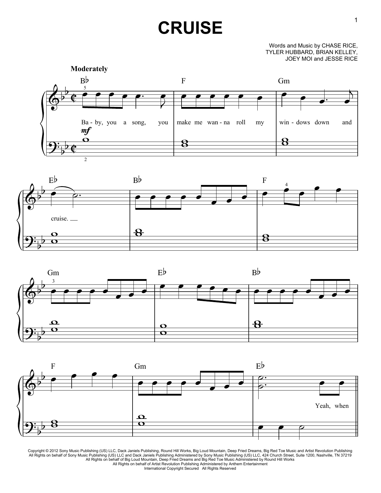 Download or print Florida Georgia Line Cruise sheet music, chords and digital score arranged for Very Easy Piano. This Country score includes 7 page(s).