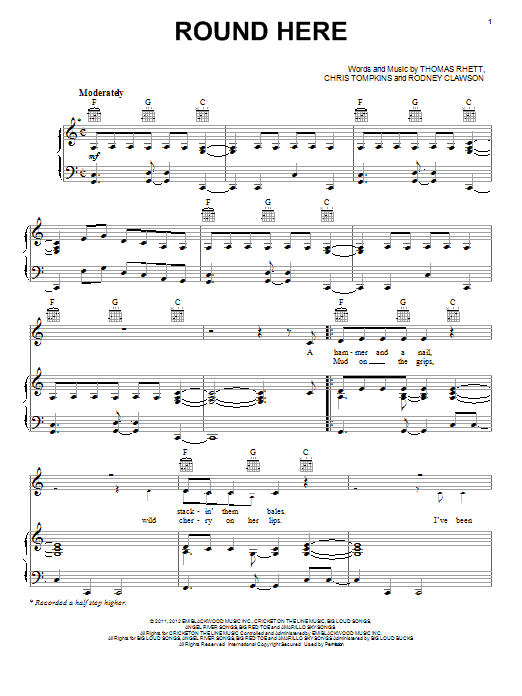 Download or print Florida Georgia Line Round Here sheet music, chords and digital score arranged for Piano, Vocal & Guitar Chords (Right-Hand Melody). This Pop score includes 5 page(s).