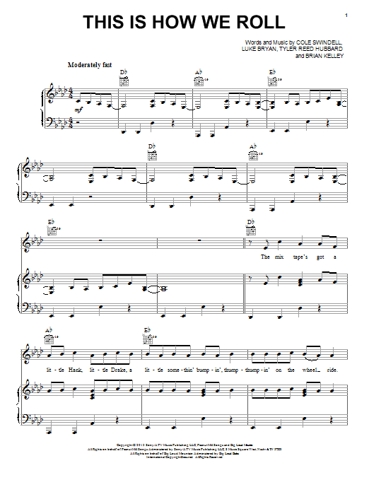 Download or print Florida Georgia Line featuring Luke Bryan This Is How We Roll sheet music, chords and digital score arranged for Piano, Vocal & Guitar Chords (Right-Hand Melody). This Country score includes 8 page(s).