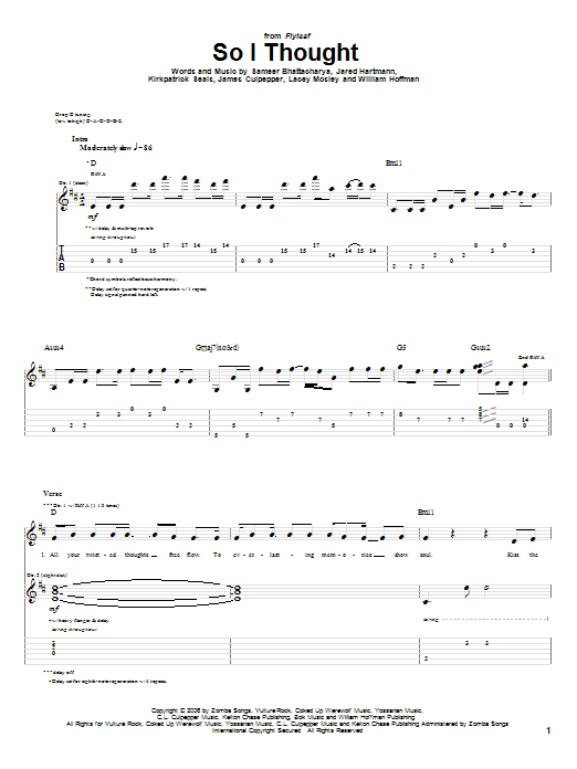 Download or print Flyleaf So I Thought sheet music, chords and digital score arranged for Guitar Tab. This Christian score includes 12 page(s).