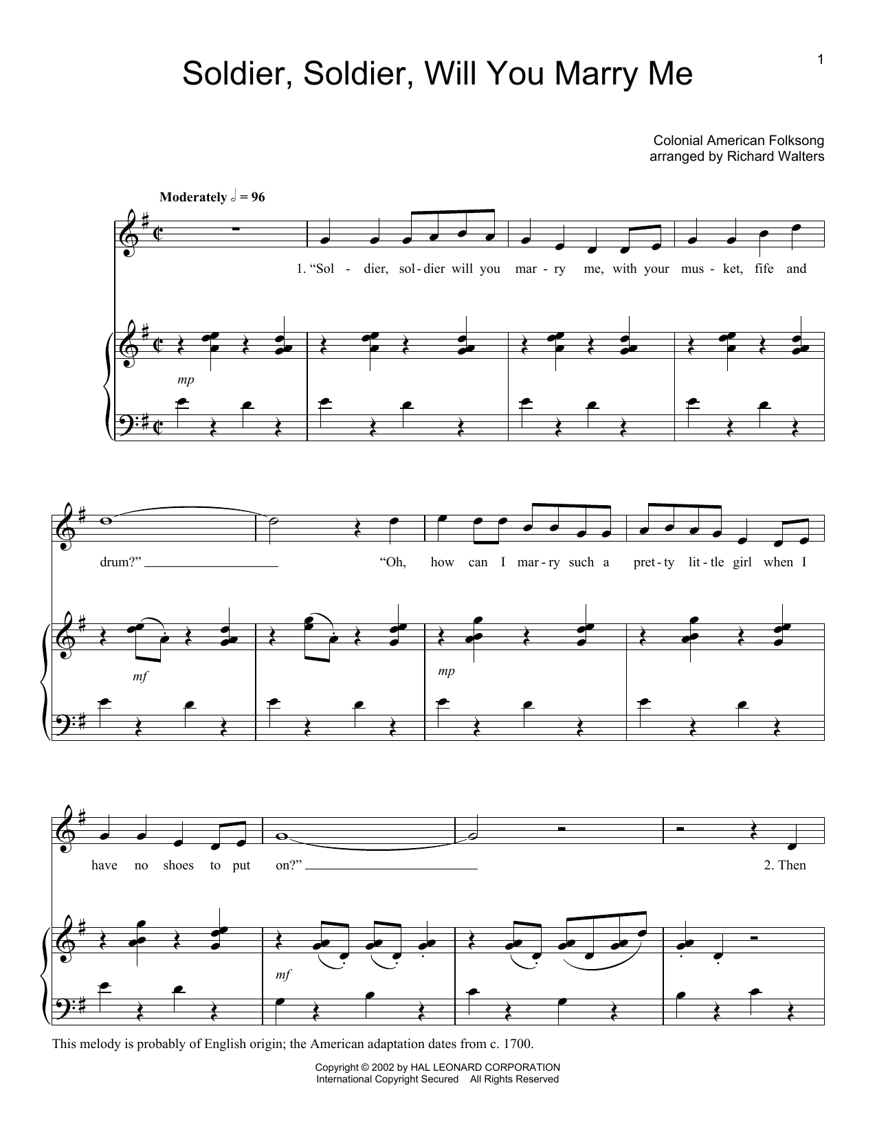Quick facts Soldier, Soldier Will You Marry Me about digital sheet music
