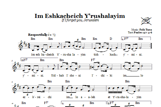 Download or print Folk Tune Im Eshkacheich Y'rushalayim (If I Forget You, Jerusalem) sheet music, chords and digital score arranged for Lead Sheet / Fake Book. This Traditional score includes 1 page(s).