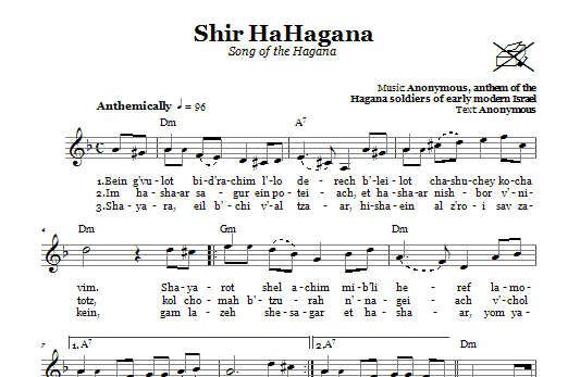 Download or print Folk Tune Shir HaHagana (Song Of The Hagana) sheet music, chords and digital score arranged for Lead Sheet / Fake Book. This Traditional score includes 1 page(s).