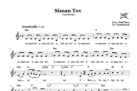 Download or print Folk Tune Siman Tov (A Good Sign) sheet music, chords and digital score arranged for Lead Sheet / Fake Book. This Traditional score includes 1 page(s).
