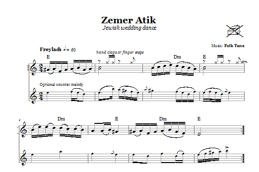 Download or print Folk Tune Zemer Atik (Jewish Dance) sheet music, chords and digital score arranged for Lead Sheet / Fake Book. This Traditional score includes 1 page(s).