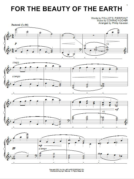 Download or print Folliot S. Pierpoint For The Beauty Of The Earth [Classical version] (arr. Phillip Keveren) sheet music, chords and digital score arranged for Piano Solo. This Traditional score includes 2 page(s).