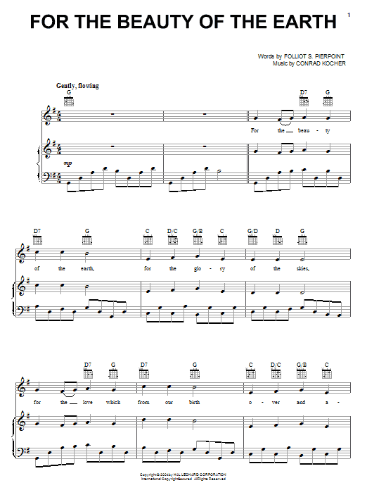 Download or print Folliot S. Pierpoint For The Beauty Of The Earth sheet music, chords and digital score arranged for Piano Solo. This Christian score includes 4 page(s).