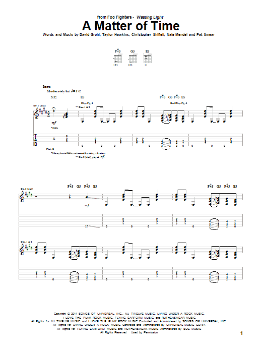Download or print Foo Fighters A Matter Of Time sheet music, chords and digital score arranged for Guitar Tab. This Pop score includes 13 page(s).