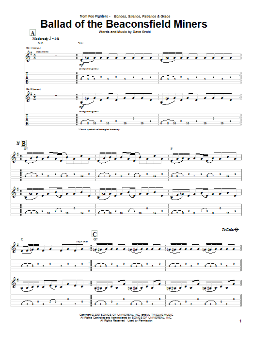 Download or print Foo Fighters Ballad Of The Beaconsfield Miners sheet music, chords and digital score arranged for Guitar Tab. This Pop score includes 4 page(s).