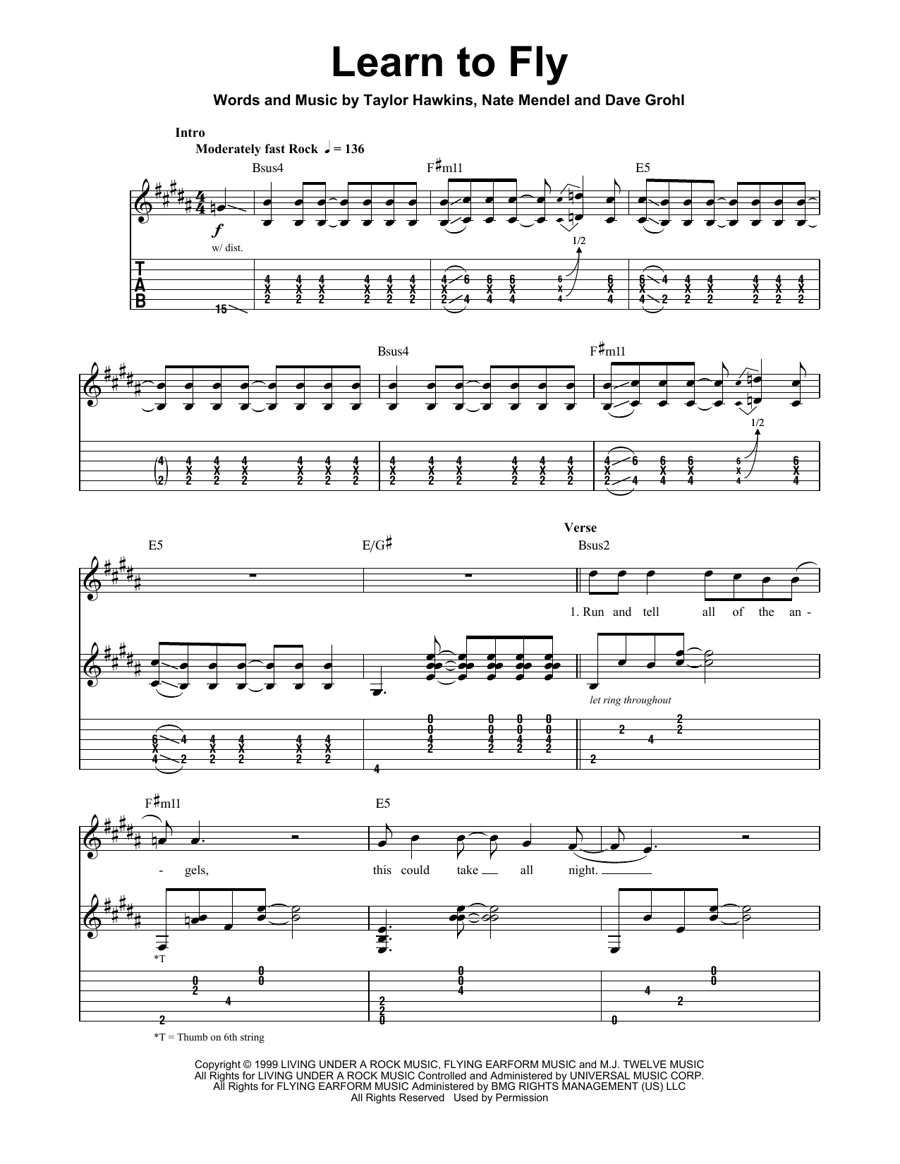Download or print Foo Fighters Learn To Fly sheet music, chords and digital score arranged for Guitar Tab. This Pop score includes 7 page(s).