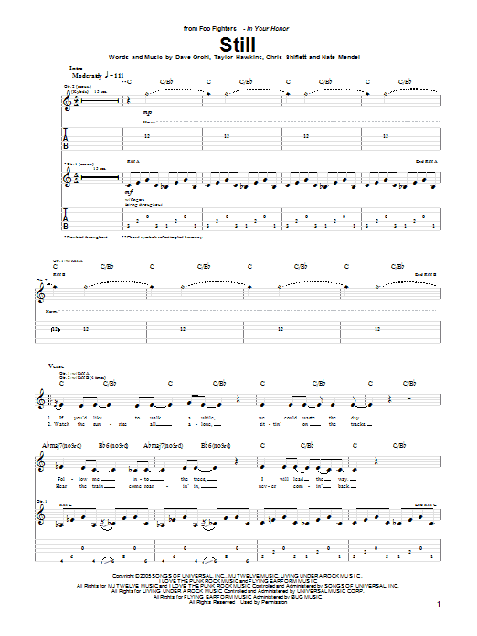 Download or print Foo Fighters Still sheet music, chords and digital score arranged for Guitar Tab. This Alternative score includes 6 page(s).