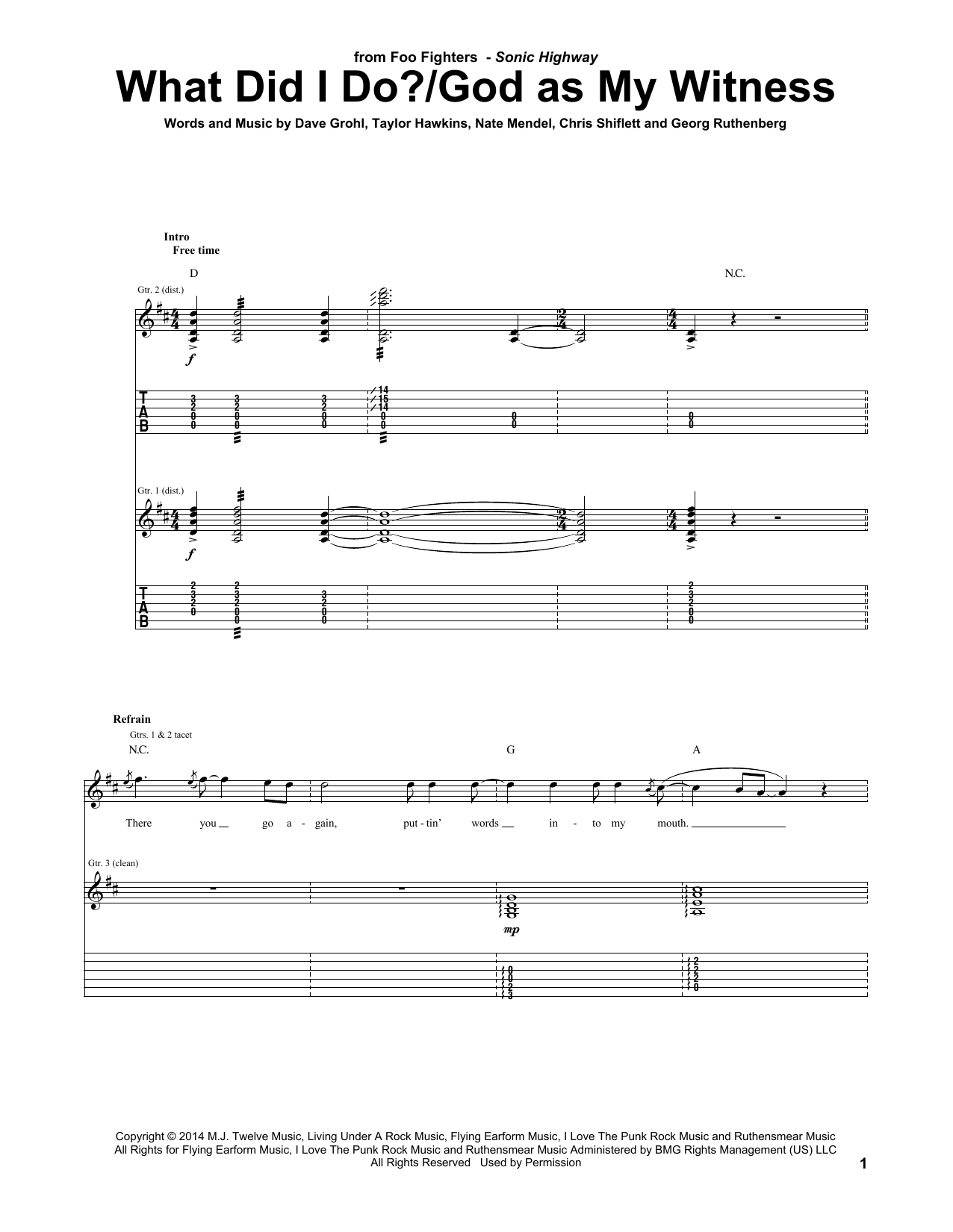 Download or print Foo Fighters What Did I Do?/God As My Witness sheet music, chords and digital score arranged for Guitar Tab. This Pop score includes 11 page(s).