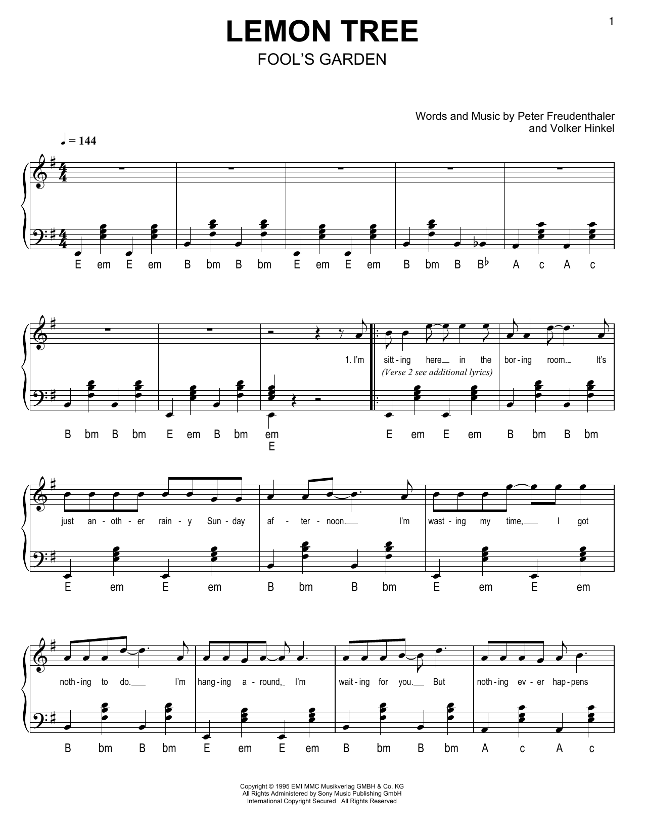 Download or print Fool's Garden Lemon Tree sheet music, chords and digital score arranged for Accordion. This German score includes 5 page(s).