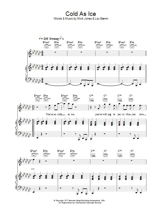 Download or print Foreigner Cold As Ice sheet music, chords and digital score arranged for Keyboard Transcription. This Pop score includes 8 page(s).