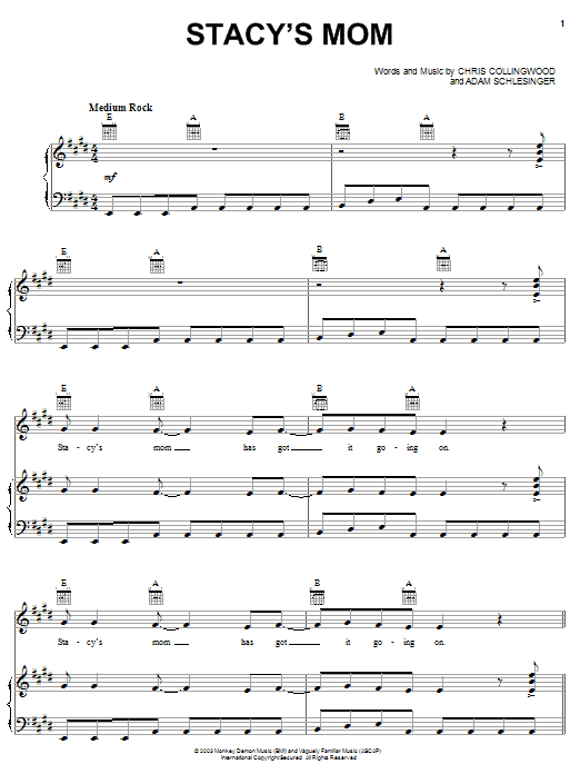 Quick facts Stacy's Mom about digital sheet music