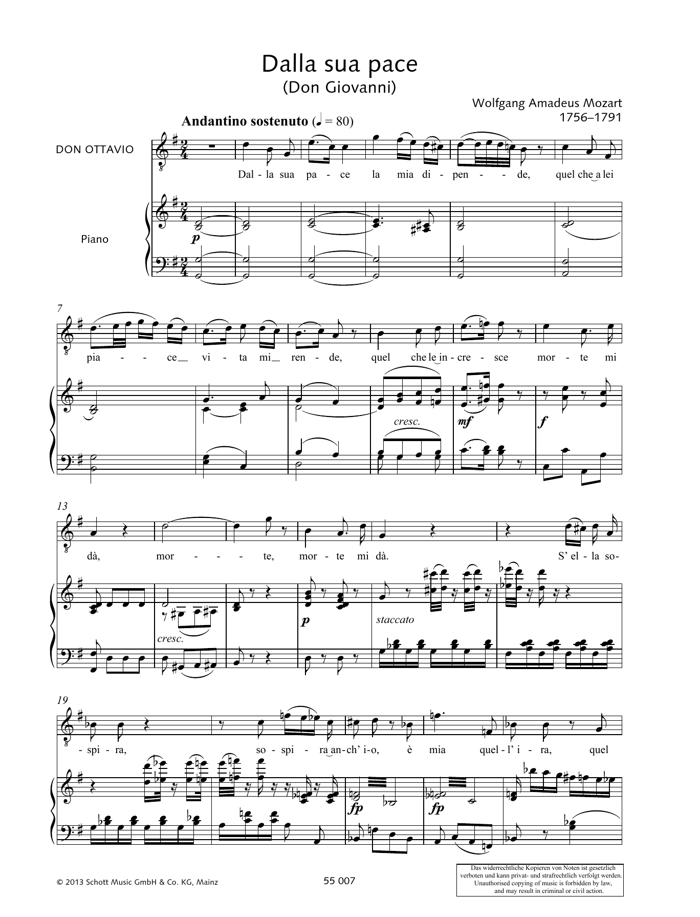 Quick facts Dalla sua pace about digital sheet music