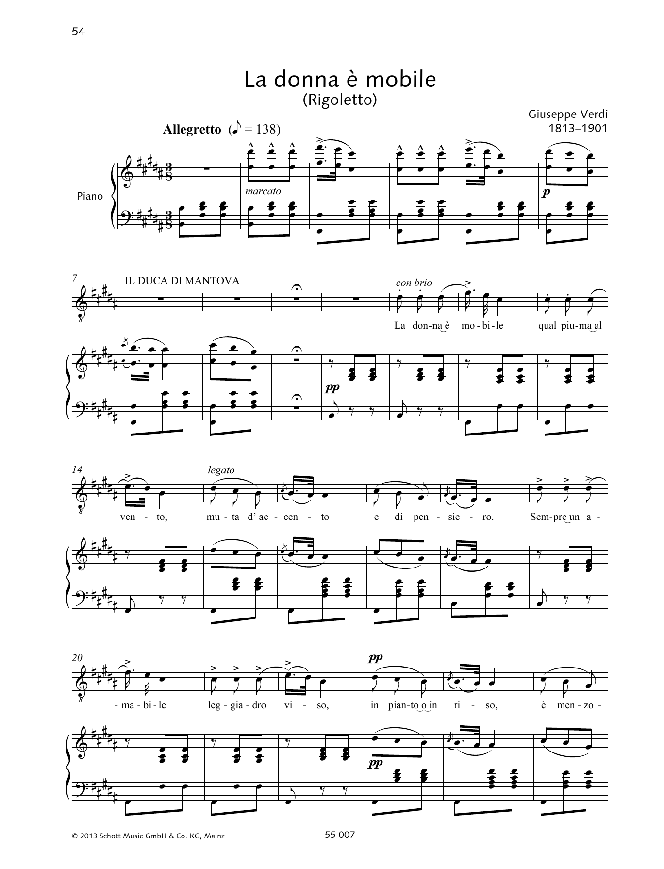 Download or print Francesca Licciarda La Donna è Mobile sheet music, chords and digital score arranged for Piano & Vocal. This Classical score includes 4 page(s).