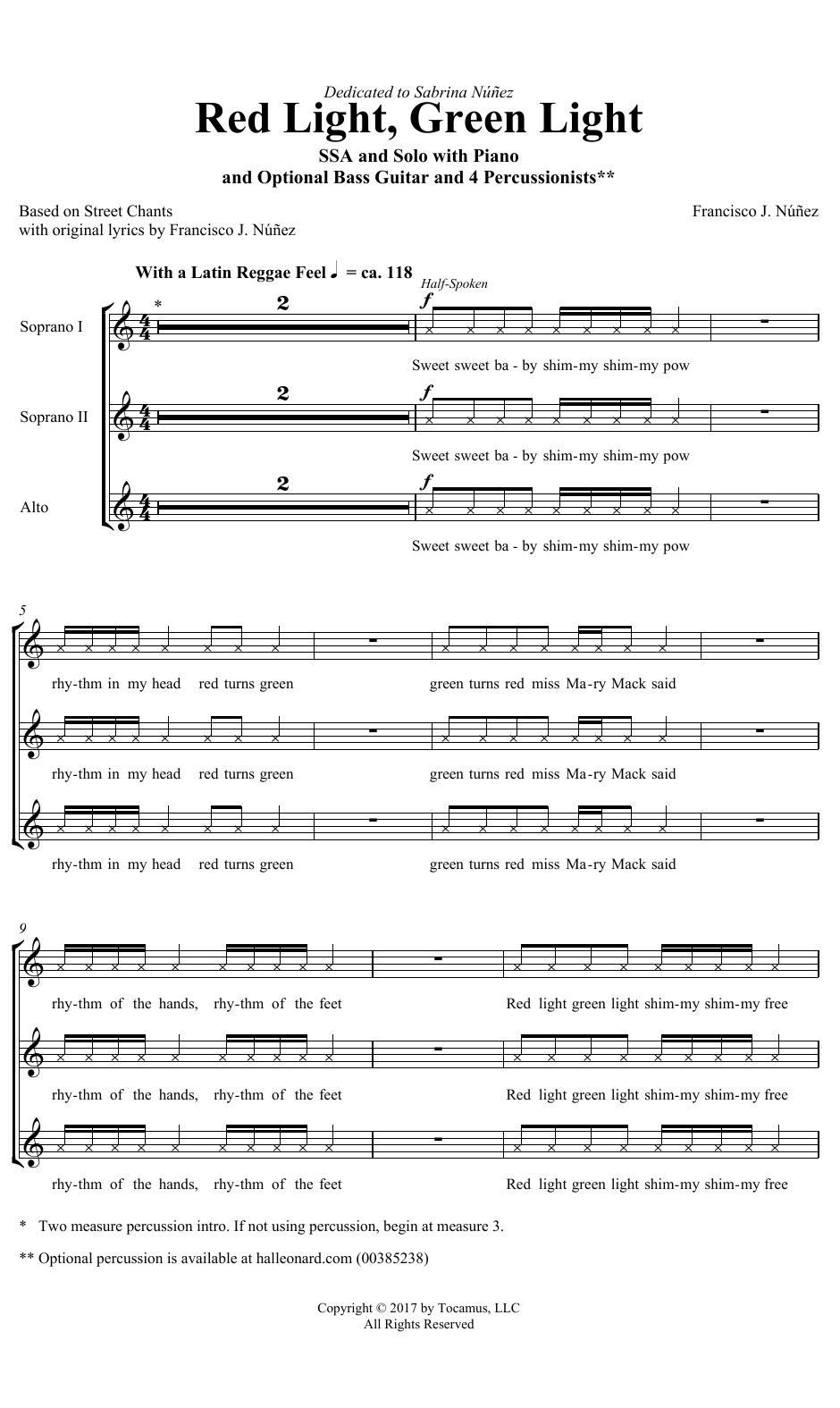 Download or print Francisco J. Nunez Red Light, Green Light sheet music, chords and digital score arranged for SSA Choir. This Concert score includes 14 page(s).
