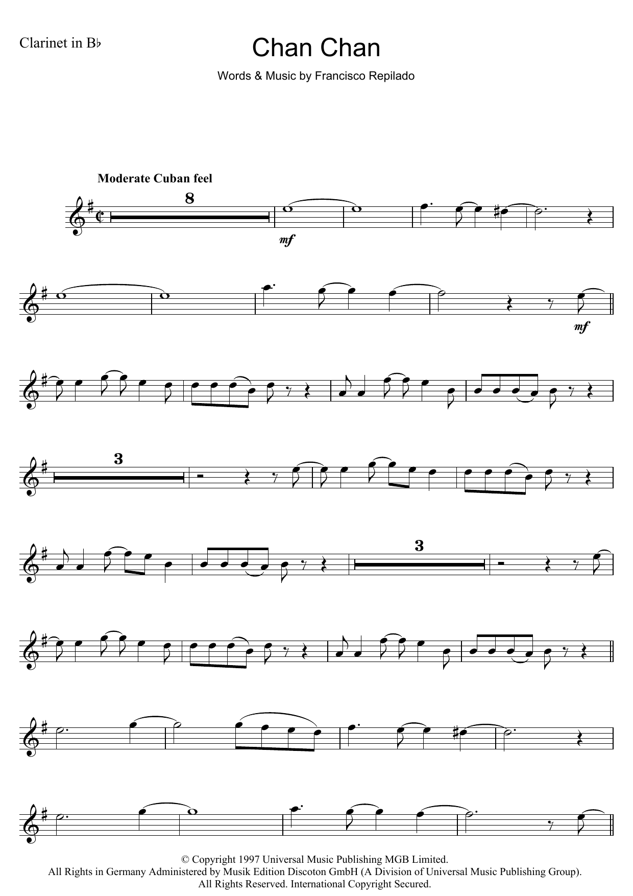 Download or print Francisco Repilado Chan Chan sheet music, chords and digital score arranged for Flute Solo. This Latin score includes 2 page(s).