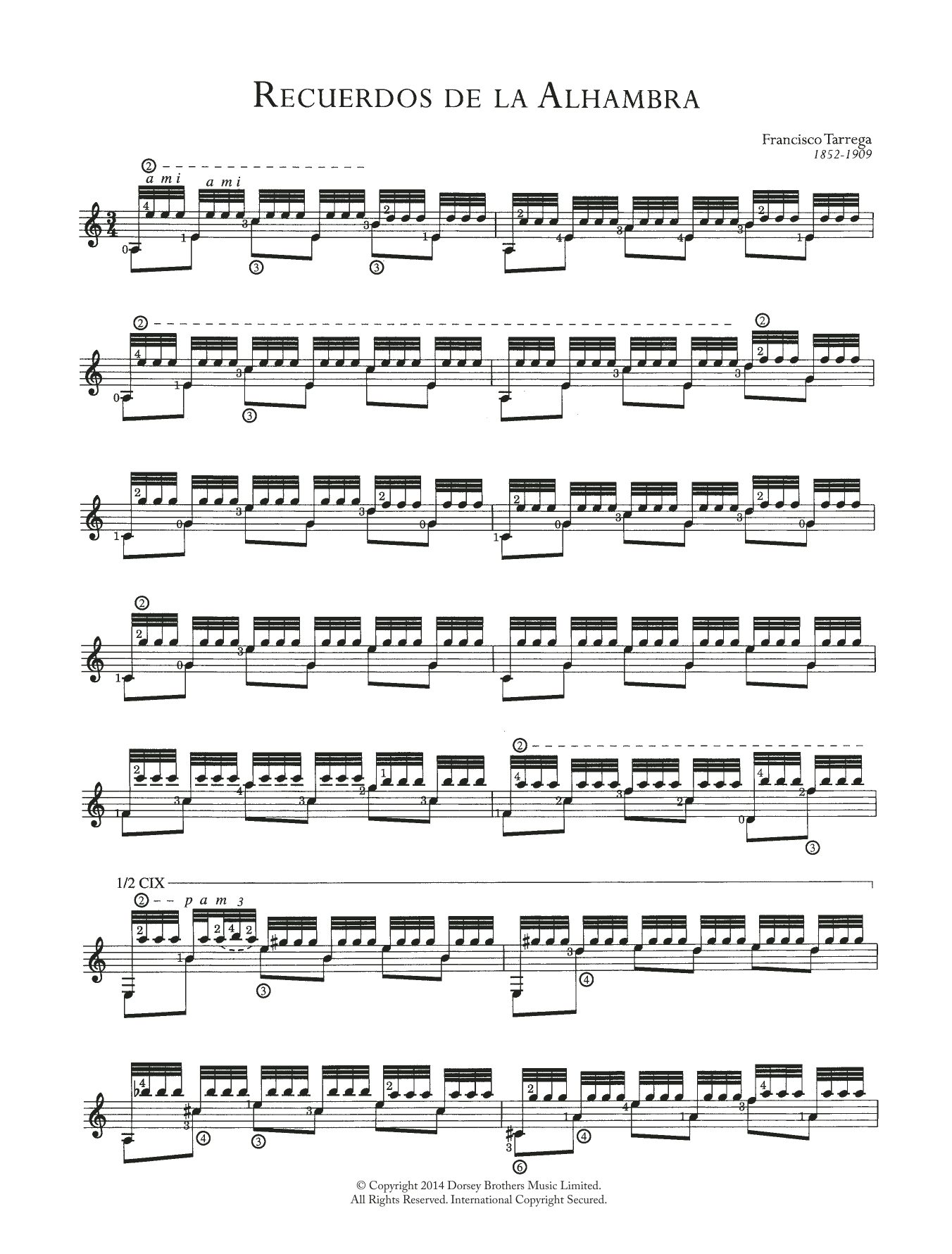 Quick facts Recuerdos de la Alhambra about digital sheet music