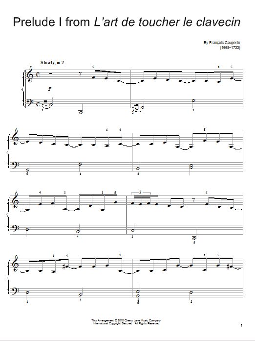 Download or print Francois Couperin Prelude sheet music, chords and digital score arranged for Easy Piano. This Classical score includes 2 page(s).