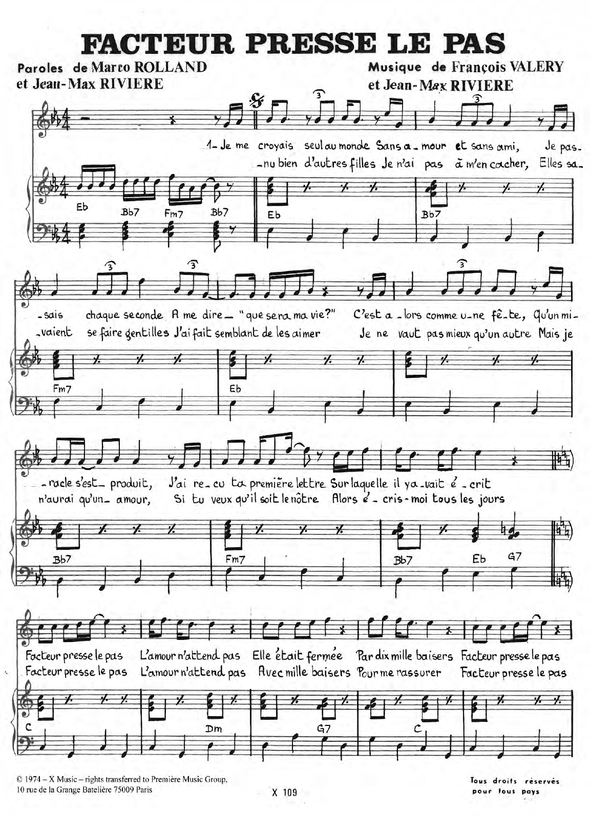 Download or print Francois Valery Facteur Presse Le Pas sheet music, chords and digital score arranged for Piano & Vocal. This Pop score includes 4 page(s).