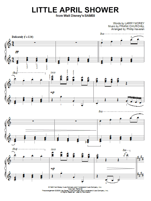Download or print Frank Churchill Little April Shower [Classical version] (arr. Phillip Keveren) sheet music, chords and digital score arranged for Piano Solo. This Children score includes 3 page(s).