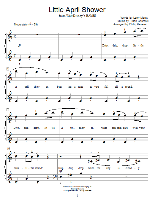 Download or print Frank Churchill Little April Shower (arr. Phillip Keveren) sheet music, chords and digital score arranged for Educational Piano. This Children score includes 3 page(s).