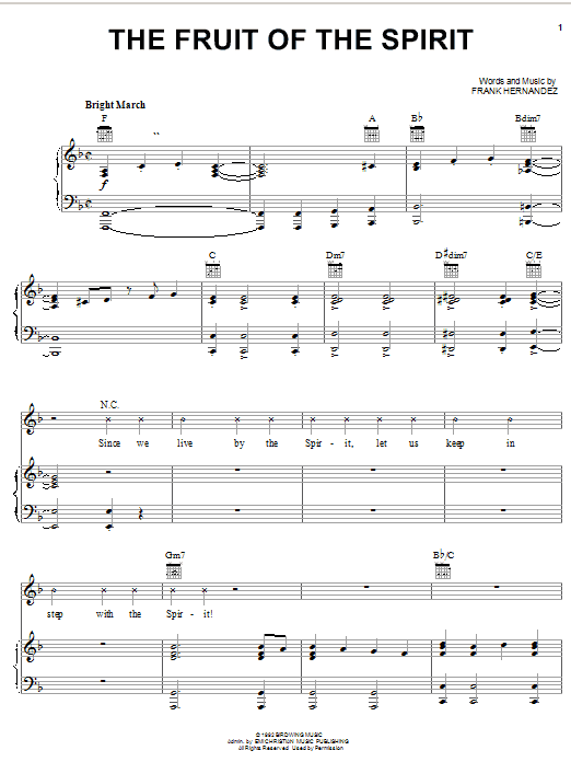 Download or print Frank Hernandez The Fruit Of The Spirit sheet music, chords and digital score arranged for Big Note Piano. This Children score includes 3 page(s).