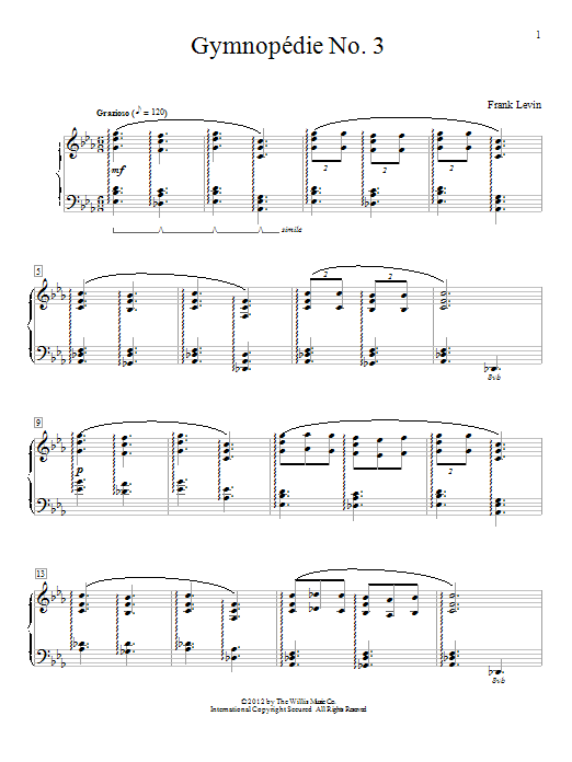 Download or print Frank Levin Gymnopedie No. 3 sheet music, chords and digital score arranged for Educational Piano. This Classical score includes 5 page(s).