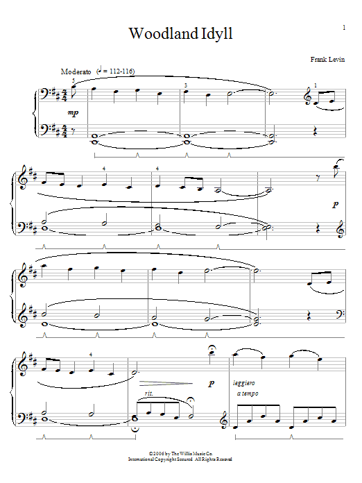 Download or print Frank Levin Woodland Idyll sheet music, chords and digital score arranged for Educational Piano. This Classical score includes 6 page(s).