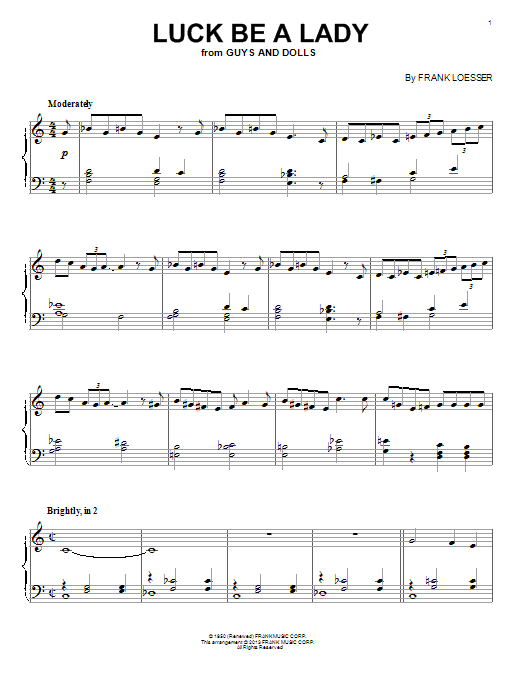 Download or print Frank Loesser Luck Be A Lady sheet music, chords and digital score arranged for Violin Solo. This Jazz score includes 1 page(s).