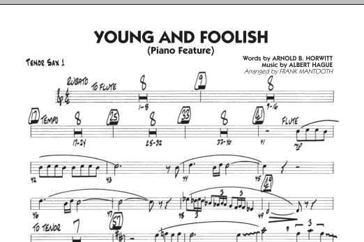 Download or print Frank Mantooth Young And Foolish - Tenor Sax 1 sheet music, chords and digital score arranged for Jazz Ensemble. This Jazz score includes 1 page(s).