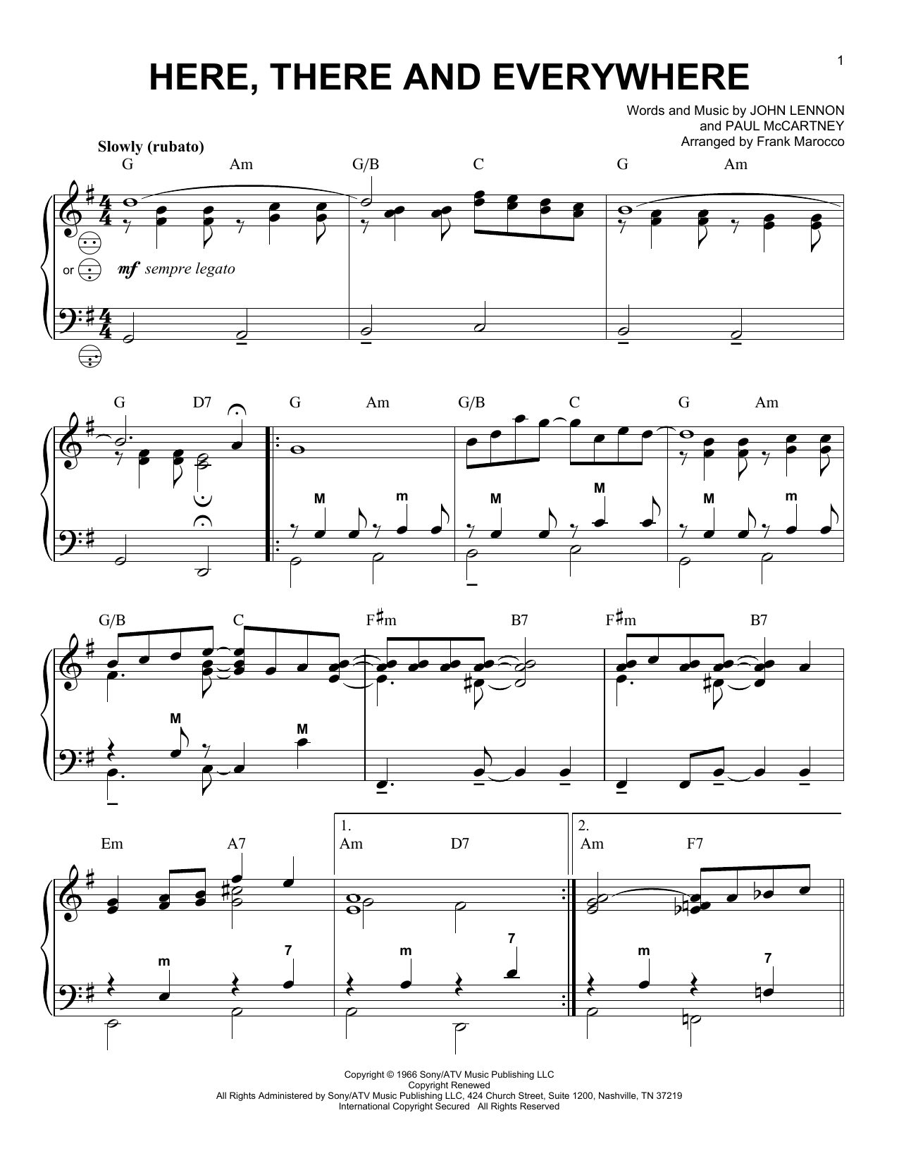 Download or print Frank Marocco Here, There And Everywhere sheet music, chords and digital score arranged for Accordion. This Pop score includes 3 page(s).