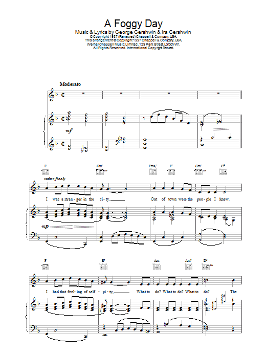 Download or print Frank Sinatra A Foggy Day (In London Town) sheet music, chords and digital score arranged for Piano, Vocal & Guitar Chords (Right-Hand Melody). This Jazz score includes 4 page(s).