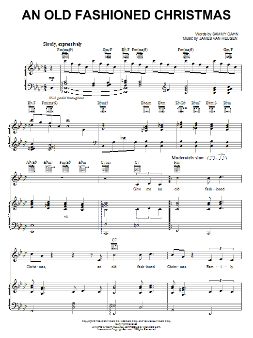 Download or print Frank Sinatra An Old Fashioned Christmas sheet music, chords and digital score arranged for Piano, Vocal & Guitar Chords (Right-Hand Melody). This Christmas score includes 4 page(s).