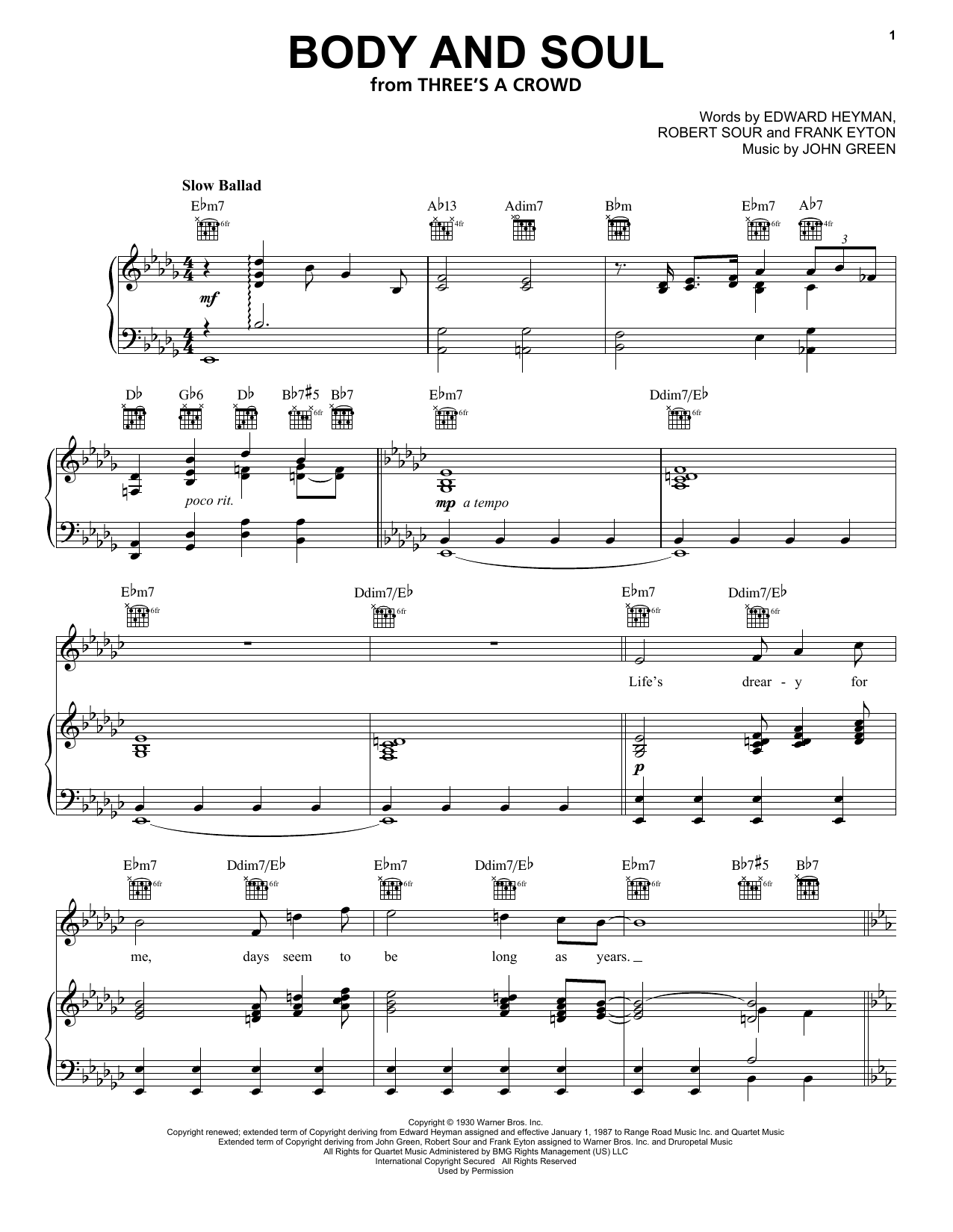 Quick facts Body And Soul about digital sheet music