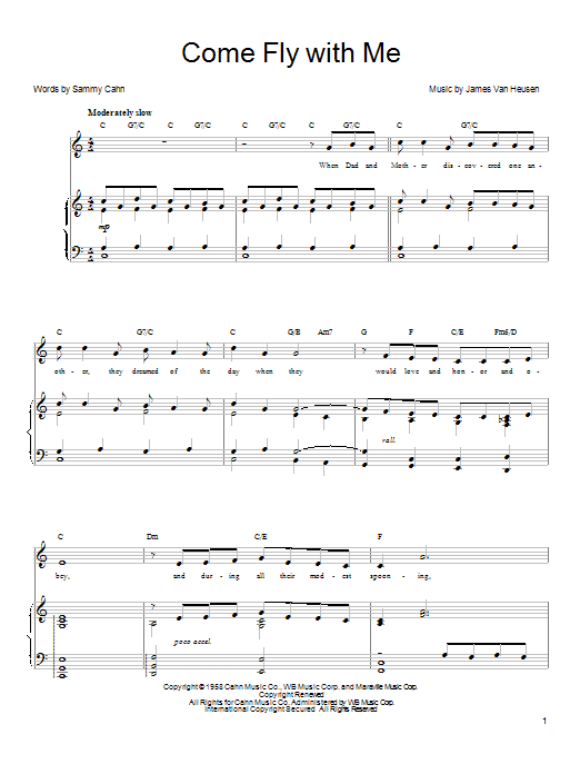 Download or print Frank Sinatra Come Fly With Me sheet music, chords and digital score arranged for Easy Piano. This Jazz score includes 5 page(s).