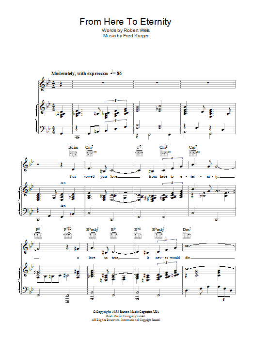 Download or print Frank Sinatra From Here To Eternity sheet music, chords and digital score arranged for Piano & Vocal. This Film/TV score includes 5 page(s).