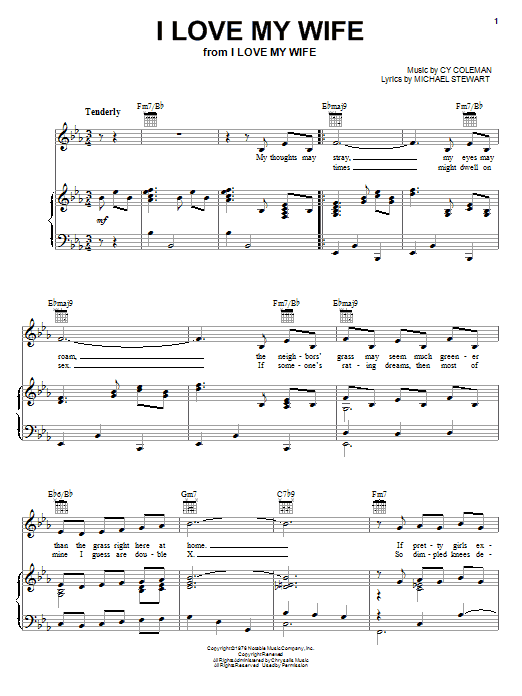 Download or print Frank Sinatra I Love My Wife sheet music, chords and digital score arranged for Piano, Vocal & Guitar Chords (Right-Hand Melody). This Jazz score includes 4 page(s).
