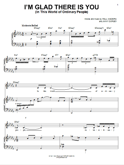 Download or print Frank Sinatra I'm Glad There Is You (In This World Of Ordinary People) sheet music, chords and digital score arranged for Piano & Vocal. This Jazz score includes 6 page(s).