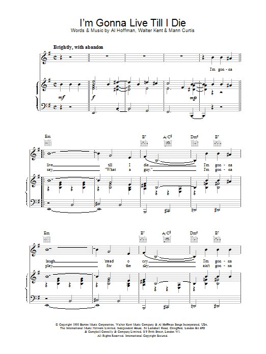 Quick facts I'm Gonna Live Till I Die about digital sheet music