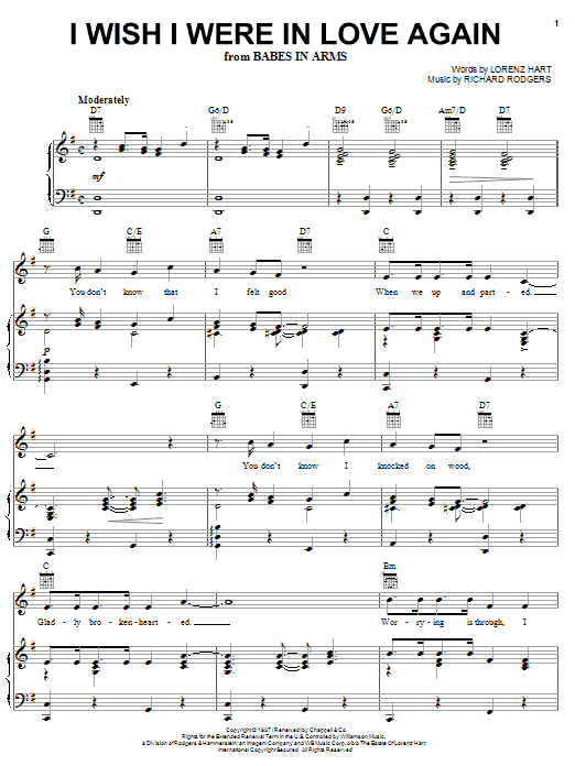 Download or print Frank Sinatra I Wish I Were In Love Again sheet music, chords and digital score arranged for Piano, Vocal & Guitar Chords (Right-Hand Melody). This Jazz score includes 4 page(s).