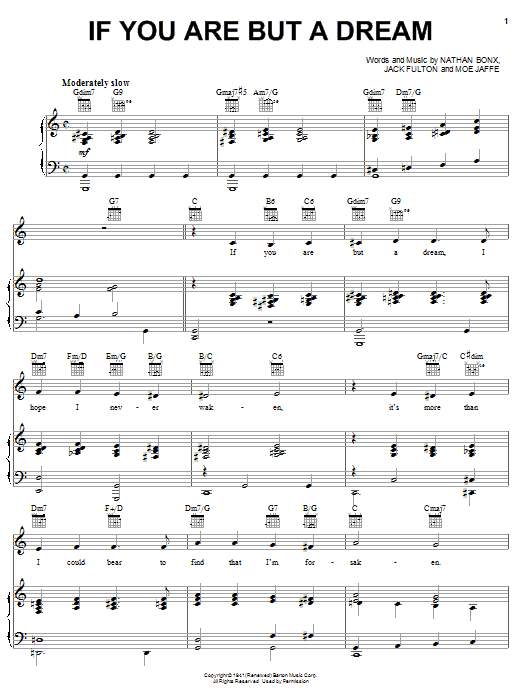 Download or print Frank Sinatra If You Are But A Dream sheet music, chords and digital score arranged for Piano, Vocal & Guitar Chords (Right-Hand Melody). This Jazz score includes 3 page(s).