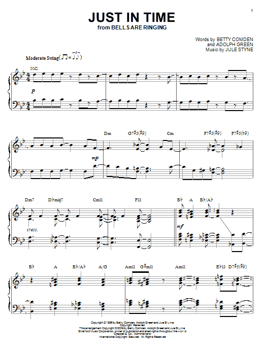 Download or print Frank Sinatra Just In Time (arr. Brent Edstrom) sheet music, chords and digital score arranged for Piano Solo. This Jazz score includes 6 page(s).